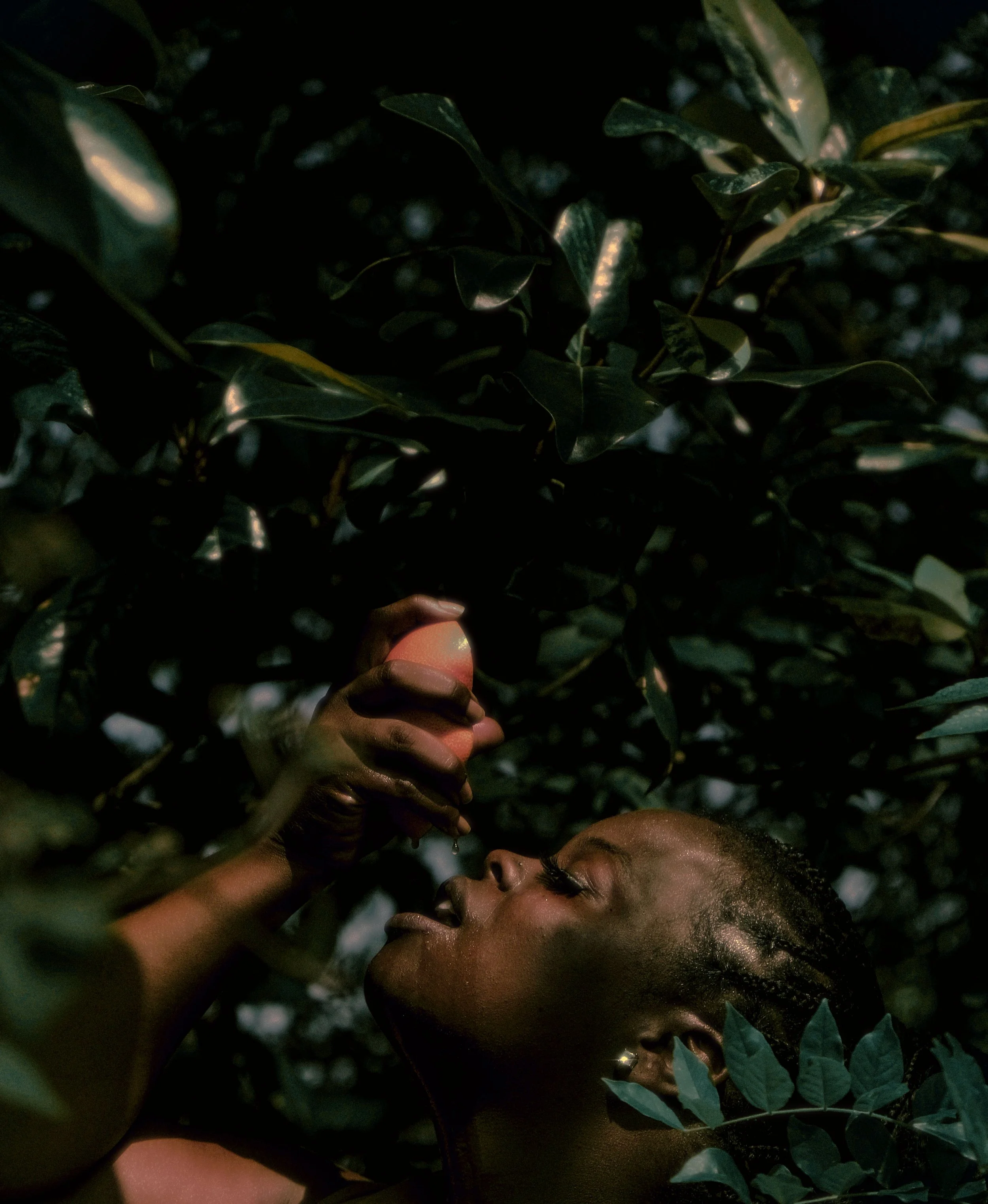 In the hush of citrus trees, she lingers — suspended in light, caught between ripeness and restraint. This is a study in tenderness and tension, of fruit held gently and desire barely touched. A visual meditation on sensation, stillness, and the stories we carry in our skin.